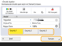 Tarama Temel Özellikleri ekranında <Önceki Ayarlar> öğesine basın. Tarama Ekranlarına Genel Bakış