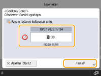 Gönderme / kaydetme zamanını girin ve <Tamm> seçeneğine basın.