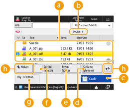 seçeneğine basın.Tarama ayarları için bkz. Ayar Ekranı ve Kaydetmeye İlişkin Tarama İşlemleri.