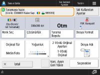 <Ana Ekran> ekranında <Tara ve Sakla> seçeneğine bastığınızda ve sonra orijinalleri taramak için <Ağ> veya <Bellek Ortamı> seçeneğine bastığınızda, aşağıdaki ayar ekranı görüntülenir.