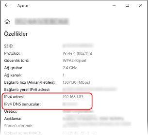 IP Adresini ve DNS Sunucusunu Görüntüleme