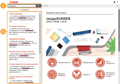 Клацніть, щоб відобразити відомості про те, як переглядати Посібник користувача, шукати в ньому інформацію тощо.
