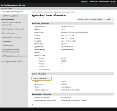За наявності програми з ліцензією, термін дії якої скоро завершиться, цей термін дії також можна перевірити з розділу <Перевірка лічильн. MEAP> для MEAP у меню Домашня сторінка панелі керування.