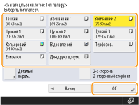 На екрані деталей параметра <Тип паперу> не можна вибрати конверт як тип паперу. Щоб вибрати конверт як тип паперу, зареєструйте тип паперу в розділі <Зареєструвати улюблений папір (багатоціл. лоток)>, а тоді натисніть пункт <Улюблений папір> на кроці 2