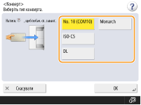 для кнопки, для якої зареєстровано конверт як тип паперу <OK>. Реєстрація часто використовуваних формату та типу паперу для багатоцільового лотка |