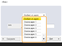 Основні операції з надсилання факсів<Адресна книга> на екрані основних функцій сканування