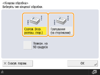 <Побудова завдання> на екрані основних функцій копіювання дає змогу використовувати функцію «Сортування/групування», навіть якщо оригінал розміщений на склі експонування.Під час виведення з групуванням вставляйте після кожної сторінки аркуш розмежування завданьЯкщо вибрати <Групування (за сторінками)>, можна вставляти аркуш розмежування завдань після кожної групи. Додаткову інформацію див. в розділі <Розділювач завдань між групами>. <Розділювач завдань між групами>