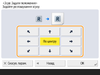 Якщо потрібно перемістити зображення на зворотній стороні в разі копіювання обох сторін, потрібно налаштувати параметр <Зворотна сторона>. Щоб перемістити в те саме положення, що й на лицевій стороні, натисніть <Як на лицевій стороні>. Для симетричного переміщення натисніть <Зворотно до лицевої сторони>. Щоб перемістити в положення, яке відрізняється від лицевої сторони, натисніть кнопку <Установити> і введіть відстань переміщення.