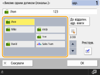 Вибір імені відправникаЯкщо на екрані основних функцій факсу натиснути <Додаткові функції>