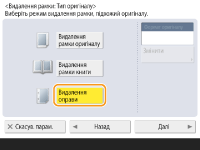 Якщо потрібно настроїти ширину окремо для кожного поля, натисніть <Видалення рамки оригіналу> або <Видалення рамки книги>