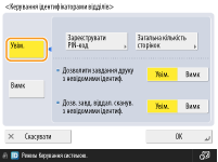 Ви також можете встановити вимогу до обов’язкового введення семи цифр для ідентифікаторів відділів і PIN-кодів. Для отримання додаткової інформації зверніться до свого дилера чи представника сервісного центру.
