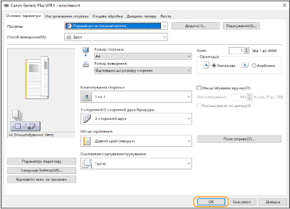 За потреби вкажіть значення параметрів друку, а потім натисніть кнопку [OK].