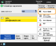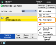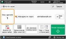 Щоб вибрати адресата з екрана <Виклик одним дотиком> після сканування, встановіть значення <Виклик одним дотиком> для параметра <Екран за замовчуванням>. Можна зменшити обсяг робіт, потрібних для надсилання відсканованих документів до того самого адресата. <Екран за замовчуванням>