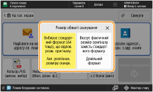 Під час сканування оригіналів довільного формату або прозорих оригіналів, а також якщо краї відсканованих зображень зрізані, необхідно вручну встановити формат сканування.