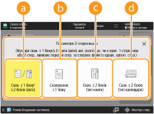 Якщо потрібно відсканувати кожну зі сторін 2-стороннього оригіналу, розміщеного на склі експонування, укажіть параметри <Побудова завдання>. Одночасне надсилання/зберігання окремо відсканованих документів (побудова завдання)