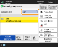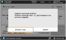 Коли для параметра <Відображати сповіщення про прийняття завдання> встановлено значення <Увімк.>, екран <Монітор стану> можна відкрити з наступного екрана, який відображається після отримання завдання надсилання. <Відображати сповіщення про прийняття завдання>
