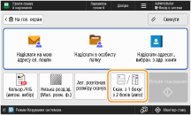 Реєстрація часто використовуваних налаштуваньАдресатів і параметри сканування, які часто використовуються, можна поєднати на кнопці апарата для використання в подальшому. Натиснувши зареєстровану кнопку під час сканування оригіналів, можна швидко встановити потрібні параметри. Реєстрація комбінації часто використовуваних функцій