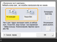 Коли встановлено параметр <Пропускати чисті оригінали>, можна вказати тільки адресатів типу <Електронна пошта> або <Файл>. Якщо встановлено адресата іншого типу, ніж <Електронна пошта> або <Файл>, надсилання виконати неможливо.