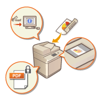 За допомогою сканування паперові оригінали документів можна перетворити в електронний формат, зокрема PDF, який широко підтримується комп’ютерами. Перетворені файли можна надсилати безпосередньо з апарата як вкладення до повідомлення електронної пошти або зберегти на файловому сервері. У цьому розділі описуються різні корисні функції, які полегшують сканування, а також основні операції.