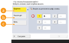 <Щоденно> (1–5), <Указати дні> (<Нд>–<Сб>, 1–5), <Вимк.>