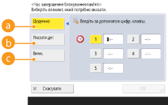 <Вимк.>Виберіть це значення, якщо час завершення отримання в пам’ять установлювати не потрібно.