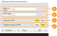 Натисніть <Увімк.>, якщо ви хочете призначити апарат SMTP-сервером, щоб отримувати електрону пошту та інтернет-факси. Пам’ятайте, що ви не зможете отримувати через SMTP, якщо не зареєструєте ім’я хоста апарата на DNS-сервері.
