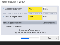 Натисніть <Увімк.> для параметра <Використовувати IPv4> або <Використовувати IPv6>, потім натисніть <Далі>. Ви також можете водночас використовувати IPv4 і IPv6.