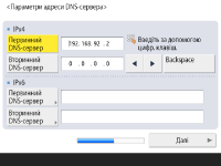 Натисніть <Первинний DNS-сервер> і <Вторинний DNS-сервер>, введіть адреси IPv4/IPv6 для сервера DNS і натисніть <Далі>.