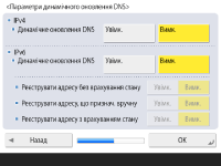 Для автоматичного оновлення з використанням параметрів DNS Dynamic Update (Динамічне оновлення DNS) натисніть <Увімк.> для параметра <Динамічне оновлення DNS>, а потім натисніть <OK>.