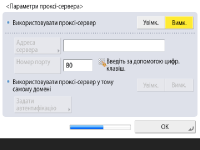 Щоб використовувати проксі-сервер, натисніть <Увімк.>, натисніть <Адреса сервера> і <Номер порту>, щоб ввести кожне значення, потім натисніть <OK>.