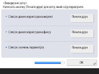 Ви можете надрукувати список користувачів мережі, список даних користувача факсу та список налаштованих значень.