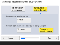 Якщо ви вибираєте <Увімк.> для параметра <Автентифікація за доп. клавіатури>, натисніть <Далі>.