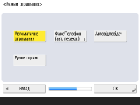 Натисніть <Автоматичне отримання>, якщо використовується лише функція факсу, або <Факс/Телефон (авт. перекл.)>, якщо до апарата підключено телефон або слухавку, і натисніть <OK>.