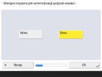 Щоб використовувати автентифікацію лише за допомогою введення з цифрових клавіш, натисніть <Увімк.>, а потім <OK>.