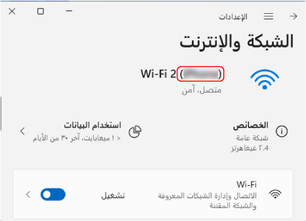 قد يكون الاسم المعروض في [اسم الكمبيوتر] على شاشة [المشاركة] غير قابل للاستخدام على الشبكة. استخدم الإجراء التالي لعرض اسم الكمبيوتر المستخدم على الشبكة.