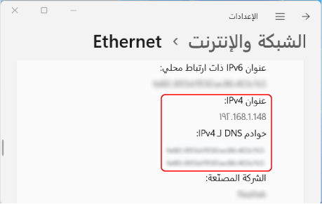 عرض عنوان IP وخادم DNS