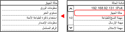عند لمس اسم العنصر أو الزر، يمكن تحديد العنصر. يتم عرض الشاشة المحددة، أو يجري تنفيذ الوظيفة المحددة.