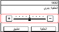 اضغط على زرّي [+] و[-] لتعديل القيمة. عندما يتم عرض شريط التمرير كما هو موضح أدناه، يمكنك سحبه ناحية اليسار أو اليمين لضبط القيمة.