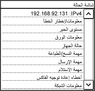 لعرض حالة الاتصال ومعلومات الخطأ عند الاتصال بشبكة LAN لاسلكية.