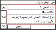 حدد عناصر الإعداد لتغييرها، وتغيير الإعدادات الافتراضية.