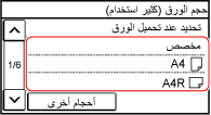 يمكنك تمرير الشاشة لعرض أحجام الورق (مثل الأظرف) غير المعروضة على الشاشة.