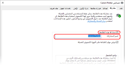 [خصائص الطابعة].