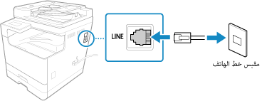 قم بتوصيل سلك الهاتف المزود بمقبس خط الهاتف (LINE) بالجهاز وموصل خط الهاتف في الحائط.