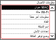 عرض عنوان MAC ومعلومات الاتصال لشبكة LAN اللاسلكية
