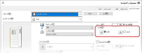 حدد اتجاه المستند الأصلي من شاشة إعدادات الطباعة للتطبيق.