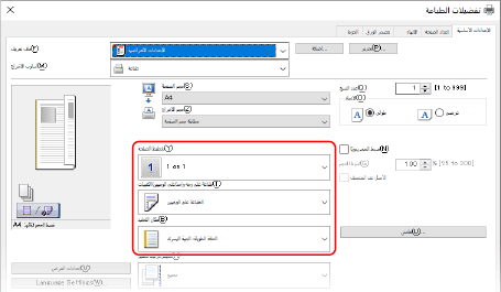 أثناء التحقق من معاينة الطباعة، قم بتعيين [تخطيط الصفحة]
