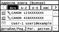 Когато извиквате адресната книга от екрана [Начало] или от екрана за сканиране или факс, се показва следният екран.