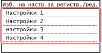Натиснете [Рег./Редакт.] и изберете елемент, в който настройките не са регистрирани.