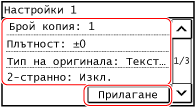Можете да извикате настройките, като натиснете бутона [Предп. н-ки за копиране] на екрана [Начало].
