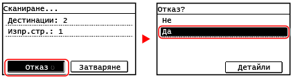 Можете да откажете изпращането на факс, като следвате инструкциите на екрана.